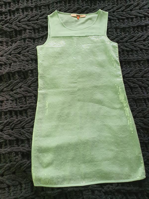 мини-платье с пайетками, в идеальном состоянии, очень нежный мятный цвет, прямой крой. длина 90 см, полуобхват 46 см