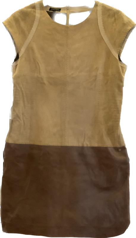 Escada платье из тонкой замши с юбкой из нежнейшей кожи теленка\ на подкладе. На платье есть затертости. На размер 38-42 максимум, рост 170