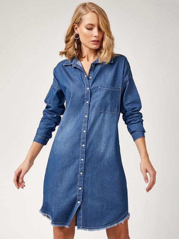 Джинсовое платье-рубашка синее прямого кроя. Модель с длинным рукавом. Полка дополнена накладным карманом. Застегивается на кнопки. Материал/состав: джинс (100% хлопок); Растяжимость: нет; Длина изделия: 93 см; Длина рукава: 43/67 см; На модели представлен: 44 размер; Параметры модели: 84х60х92, рост 173 см. ❗ Все заказы оформляются только через ЧАТ, через кнопку КУПИТЬ ➡️ отклонены. Страна производитель ➡️ Украина. 🚛 Доставка ➡️ "Новой почтой" (2-3 рабочих дня). Доставка сплачивает покупатель. 👛 Оплата ➡️ 100% Передача на р/р ФОП "ПриватБанка" или после платья с авансом. Если посылку не забираете, аванс возвращаем по учету транспортных расходов в обе стороны. 📦 🔁 Обмен и возврат ➡️ за счет покупателя, при наличии оригинального и невредимого упаковки и ярлыков, отсутствия следов эксплуатации, стирки и ношения.