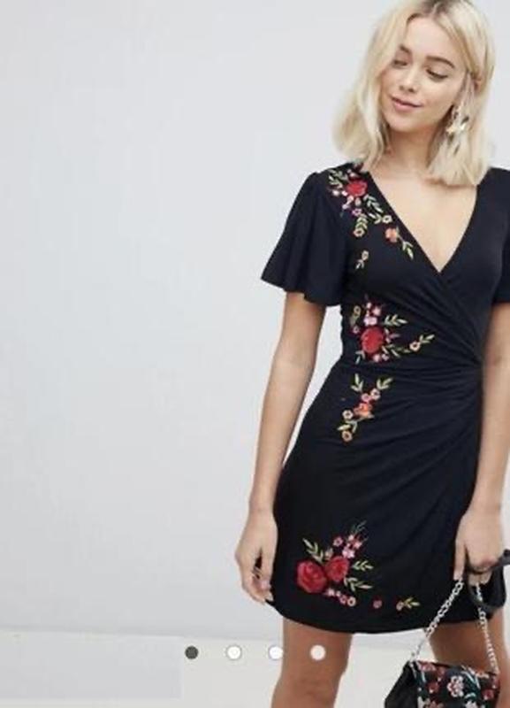 Черное красное короткое вышитое цветами платье-халат на запах "asos",m