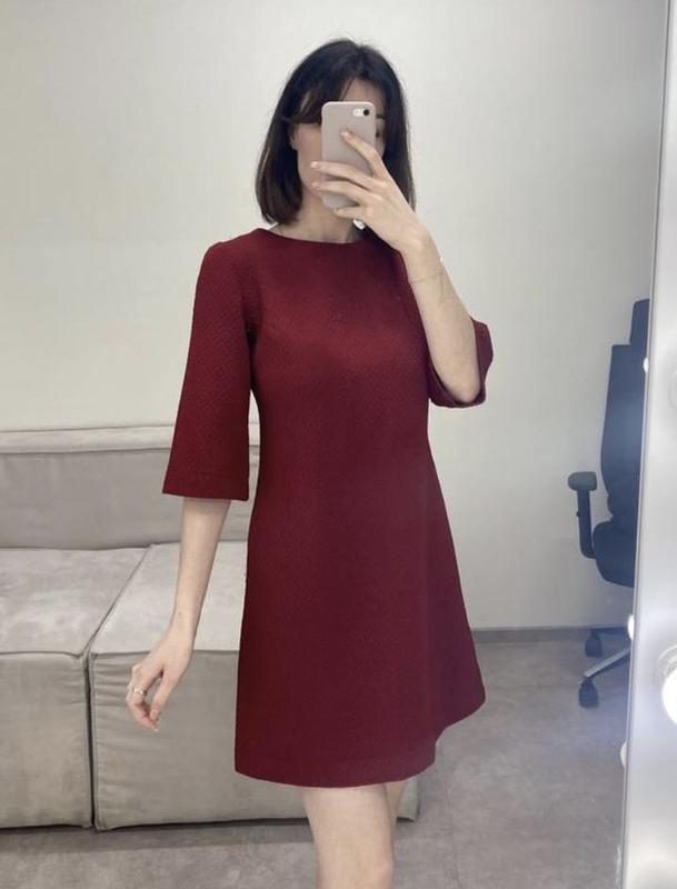 Мини-платье фактурной текстуры Irena Richi, красивого винного цвета. Рукав 3/4, сзади застежка. На бирке указан L, но на самом деле подойдет на международный S, она маломерная. Надела только раз. Состав: 35% коттон 30% полиэстер 35% вискоза
