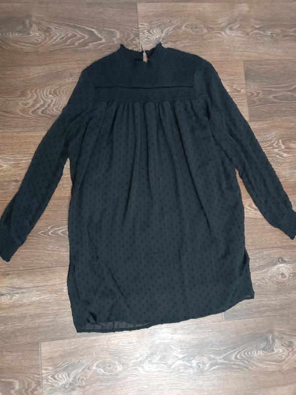 Бутылочко короткое черное. В очень хорошем состоянии. Длина около 80-83 см. Одевался на рост 165-167. Очень симпатично смотрится. Недостатков нет.