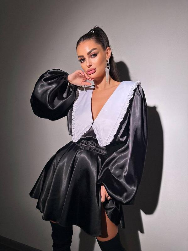 Платье с воротником и объемными рукавами с широким поясом ▫️ цена 1110 грн ▫️ткань: королевский атлас ▫️размер: Размер S и М