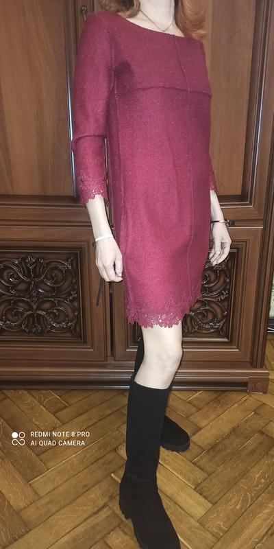 Шикарное теплое итальянская платье, бордовый цвет, сезон: осень зима, весна. С кружевом на рукавах и юбке, идеально подходит на прохладные вечера. В идеальном состоянии в носке и пользовании не было. Ярмарковый экспонат. Реальные размер 34-36 (S)