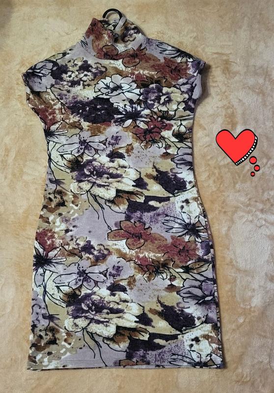 Дуже красива сукня під горло без рукавів у гарних та теплих тонах осені. Сукня дуже гарно сяде по фігурі. Сукня тепла і тягнеться. Замiри ПОГ - 41 см ПОТ - 39 см ПОБ - 44 см Довжина плеча - 19 см Довжина сукнi - 82 см
