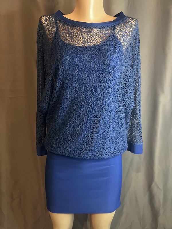 Насичено синього кольору, обтягуюча сукня-майка із пришитою павутинкою зверху)