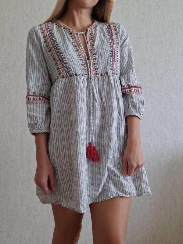 Женское очень свободное платье. Заявленный размер М, я носила на S. Есть вероятность на М будет укоротко и в плечах тесная. На фото рост 160, вес 53