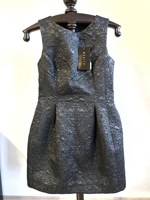 Сукна Mohito, розмір 40. Чорний колір з люрексовою ниткою в структурний візерунок. Склад -64 % бавовна, 26%-поліестер. Заміри: напівобєм грудей-44 см. напівобʼєм талії- 39 см. довжина - 87 см.