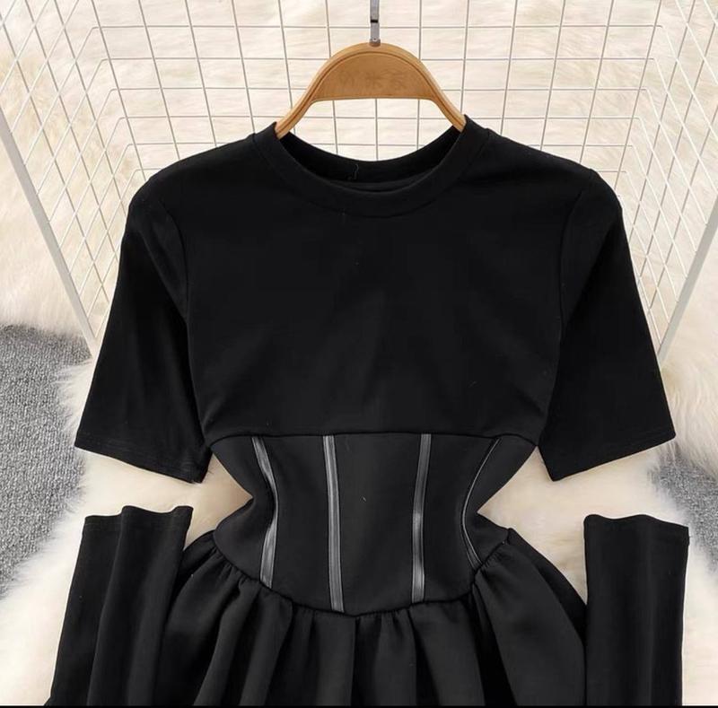 🛍Сукня 📌Модель: tk 4324 📐Размер: 42-44, 46-48 🎨Цвет: Черный 🪡Ткань: креп дайвинг с кожаными вставками На рукавах есть вырез для большого пальчика