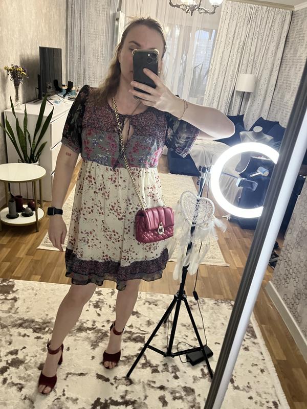 Размер L-M-S подходит. На фото параметры 98-74-98.Летное легкое платье в стиле Бохо. В реальной жизни выглядит гораздо лучше чем на фото за счет качества текстуруры ткани. Б/у