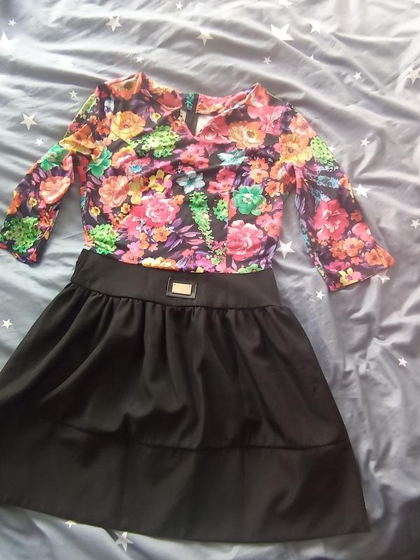 Плаття жіноче. Рукав нижче ліктя. Матеріал верху тягнеться, низу ні. Ззаду на поясі є резинка. Замок доходить нижче поясу. Ідеально підходить для весни, кольоровий принт верху освіжить ваш образ.