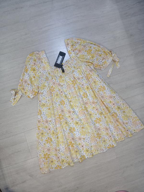 Невероятно легкое платье из натуральной ткани. Есть подкладка. Размер указан 12. Замеры сделают по запросу.