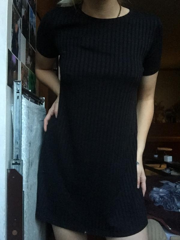 Легкое с короткими рукавами темное классическое платье из материала, которое хорошо тянется