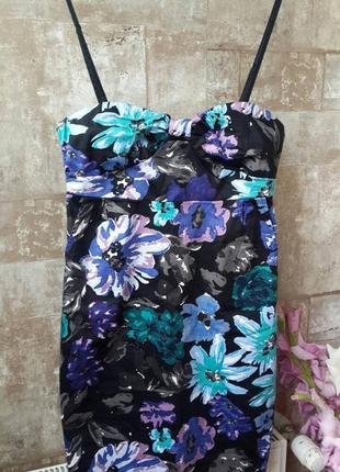 Очень красивое нарядное платье в модный цветочный принт. Очень добротно сделано: - силиконовая полоска по окантовке лифа позволяет платью не сползать - бретельки съемные и регулируются по длине - функциональные карманы по бокам - без подкладки - разрез сзади по подолу - молния на спинке работает легко. с внутренней стороны молния закрыта, чтобы не было дискомфорта. Замеры: длина - 69см от подмышки до подмышки - 41см под грудью - 38см тали - 41см бедра - 48см по низу - 45см