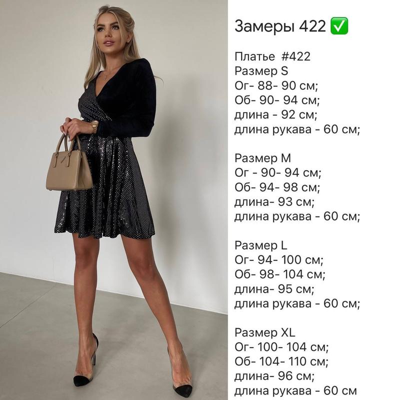 Сукня арт. rkot. 422 Дуже гарна, стильна та нарядна сукня Розміри: S, M, L, XL Тканина: бархат Корея Модель на запах, у комплекті поясок Колір: чорний з сріблом Відмінна якість