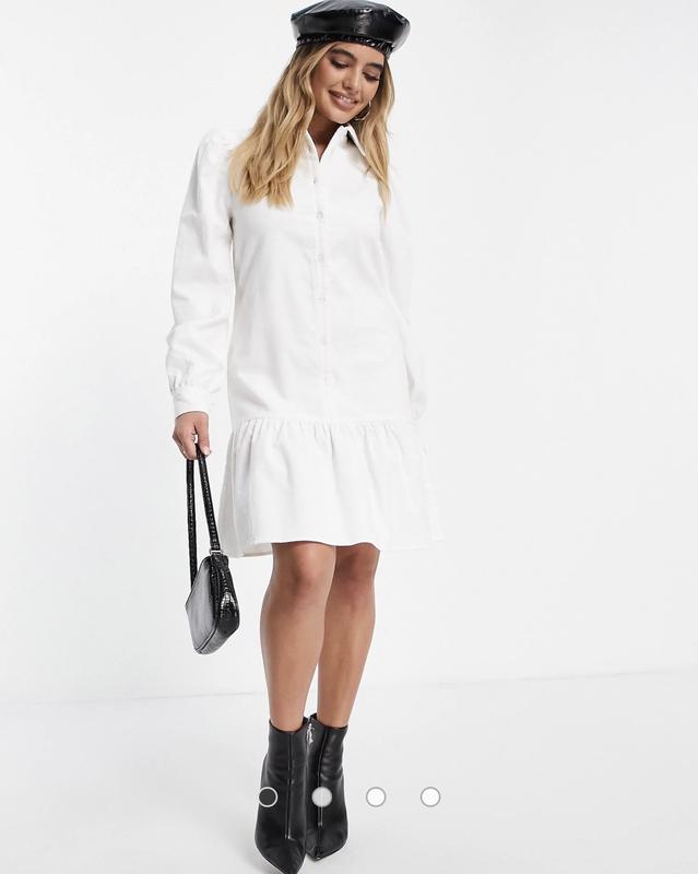 Размер:36 Плечи:36 см Ог:102 см Рукав:64/45 см Бёдра:114 см Длина:94 см Состав:96% полиестер 4% еластан Платье-рубашка с оборками по подолу Это платье-рубашка имеет длину миди, классический воротник, длинные рукава-фонарики с эластичными манжетами, застежку на пуговицы спереди, оборку по низу и свободный крой.