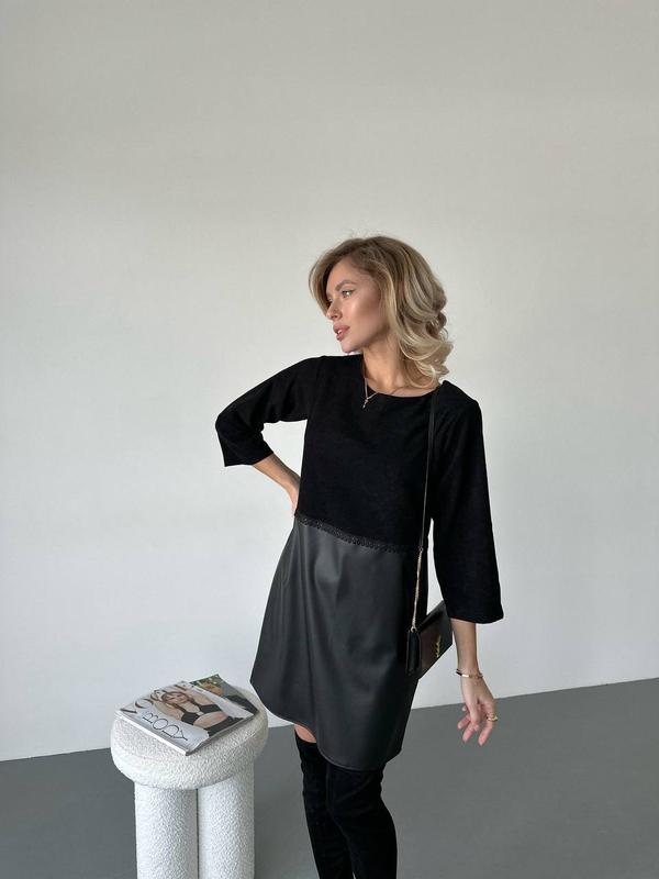 ♠️Сукня ☑️Ткань: эко кожа, микровельвет ☑️Размеры: 42-44, 46-48 ☑️Цвет: черный ☑️Цена: 540 грн