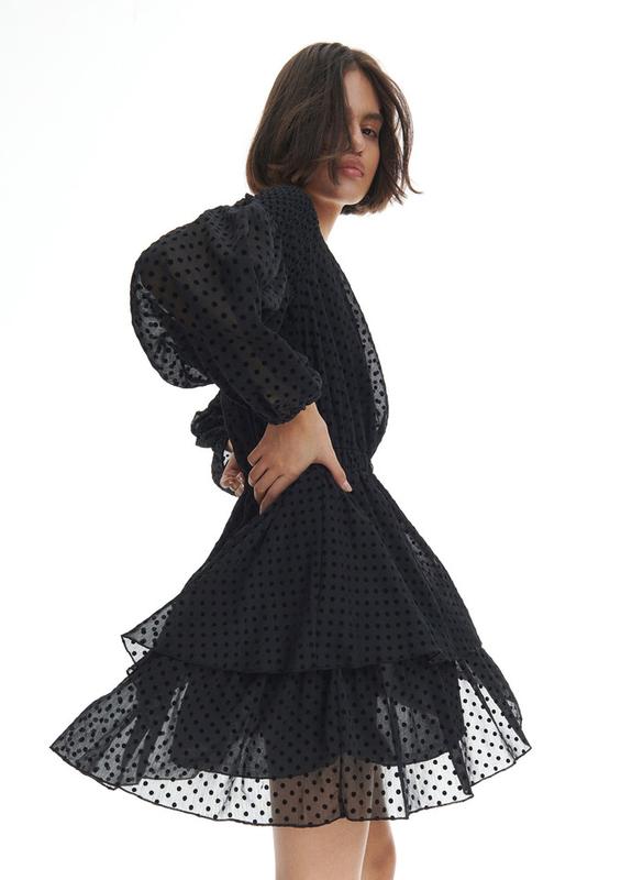 Отлично смотрится, подойдет под резинку. Плечи 36см. Рукав 48см Талия тянется до 88см Длина 80см.