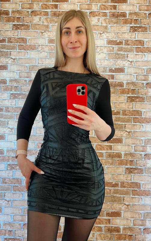 Платье со вставками из эко-кожи.Гарно садится по фигуре.Тагнётся. И сама очень красивая. Стан идеален. Подойдет на S и небольшую М Одягала один раз.
