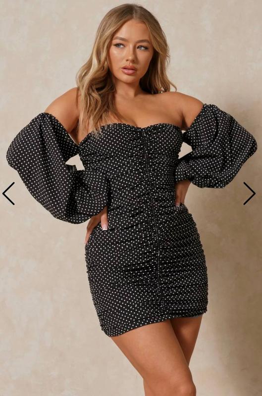 Волшебное платье в горох Misspap👗. Впереди затяжка, можно срегулировать себе нужную длину. 💣 🎈Размер по бирке XS, а по факту то S. Длина-64 см, об. талии – 70 см (тянется), об. бедер – 92 см, об. грудь – 84-90 см. Стан- новое с биркой.