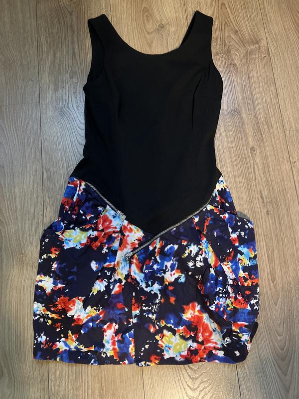 Очень стильное платье на размер 34-36. Модния сзади, карманы боковые на юбке.
