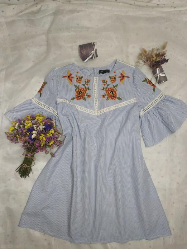 Платье с вышивкой PRIMARK Имеет не значительный недостаток, под правой рукой едва заметны пятнышки(последнее фото). При необходимости сделать замеры.