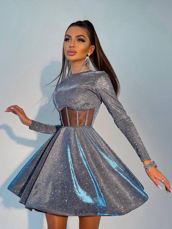 Приталена блискуча сукня з корсетною вставкою та пишною спідницею-сонцем