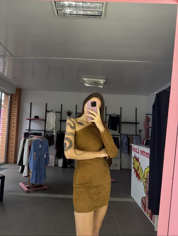 Платье с одним рукавом из ено-замши🧡 Размер S (xxs-s). Замеры 1 платья: грудь 80 см, талия 61 см, бедра 84 см, длина 82 см, длина рукава 60 см. Ткань тянется. Замеры 2 платья: грудь 82 см, талия 60 см, бедра 80 см, длина 82 см, длина рукава 58 см. Ткань тянется. Доставка: укр почта, новая почта, meest express, самовывиз из Чернигова. Оплата: 100% оплата или накладной платеж. Накладной платеж только новой по почте с минимальной предоплатой в 200 грн. Обмен и возврат отсутствуют! Только при фабричном дефекте (проверяйте при получении по почте).