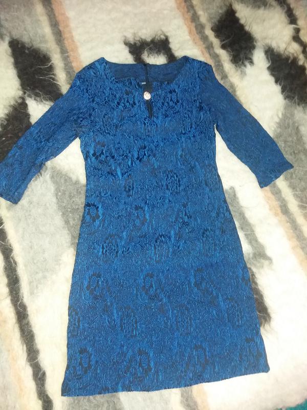 Платье очень хорошо тянется (хотя сзади есть еще и замок). Одето один раз. ПОГ - 42 (47) см, ПОТ - 35 (40) см, ПОБ - 42 (47)см, длина - 86 см, длина рукава - 39см (3/4). Размер 10-14.