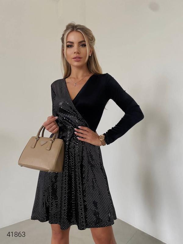 Вечернее платье из бархата. Модель на запах, в комплекте пояс. Тканина: трикотаж оксамит. Ориентировочные замеры готового изделия: 42 (ОГ 88-90, ОБ 90-94, длина 92, длина рукава 60), 44 (ОГ 90-94, ОБ 94-98, длина 93, длина рукава 60), 46 (ОГ 9 -100, ОБ 98-104, длина 95, длина рукава 60), 48 (ОГ 100-104, ОБ 104-110, длина 96, длина рукава 60) 01631
