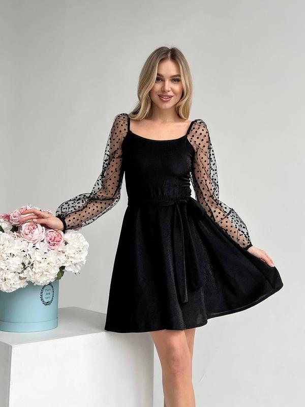 Шикарное платье вечернее трикотажные люрекс с прозрачными рукавами сеточкой чёрная серебри...