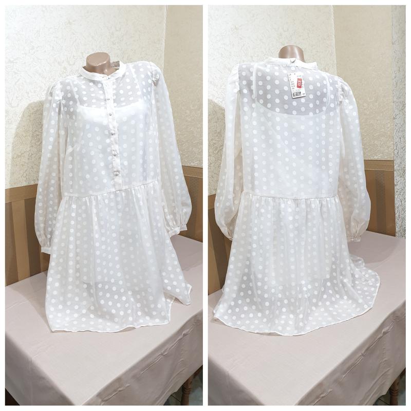 пог. 56. пот. 59. поб. 100. длина 98. рукав 66. плечи 37. p. L. 15% viscose. 85% polyester. цвет бело молочный.