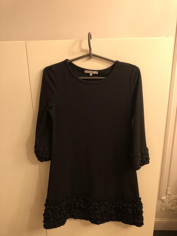 Красивое черное платье С гарними рюшами Размер на бирке L Но красиво смотрит и на s