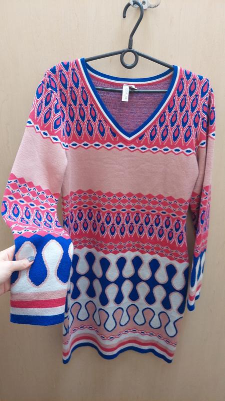 В идеальном состоянии, очень хорошо тянется, размер указан 36-38, но 100% подойдет и на 40 S,M,L,материал в виде свитерика, теплочка