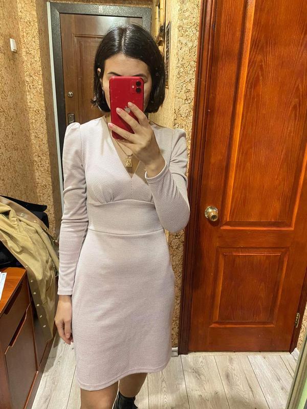 Стильное платье, подходящее на ощупь, принт гусиная лапка,цвет ближе к пудре, как на 1фото, но без этикетки, Черное смотрится очень красиво