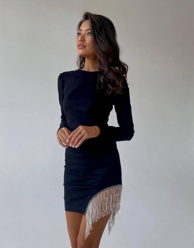 Черное мини платье с бахромой, короткое черное платье с длинным рукавом, трикотажное платье на праздник недорого, мини платья Хит продаж Платье с бахромой 🤩 Модель am 052 Размер: 42-44, 46-48 Цвет черный Тканина: трикотаж Алекс Платье, которое никого не оставит равнодушной❤️ Идеальный вариант для вечеринки, где ты будешь сиять, как настоящая звезда😍 На спинке потайная молния, бахрома металлическая. Черное мини платье с бахромой, короткое черное платье с длинным рукавом, трикотажное платье на праздник недорого, мини платья мам