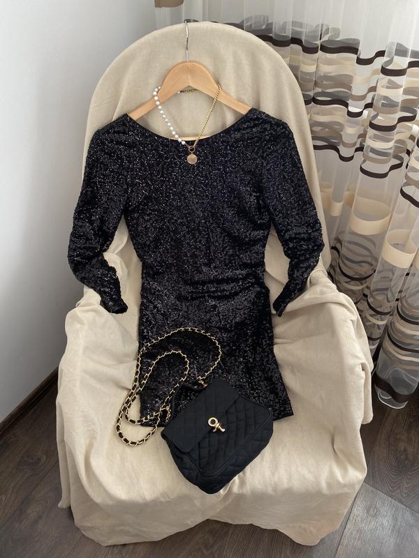 Трендовое платье мини НМ с красивой спинкой В размер S Маленькая м Стан - идеальный Длина 84 Рукав 53 Ширина поб 42