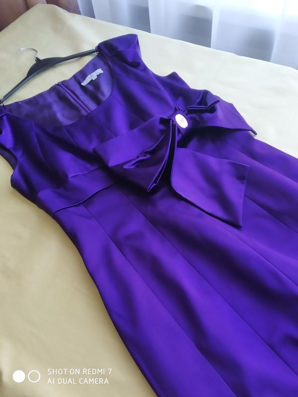 Платье темно-фиолетового цвета, атласное, на спине замочек. Замеры ПОГ 42 см ПОТ 36 см По бедер 46 см по низу платья 45,5 см от плеча до талии 34 см от талии до низа 67 см общая длина 101,5 см