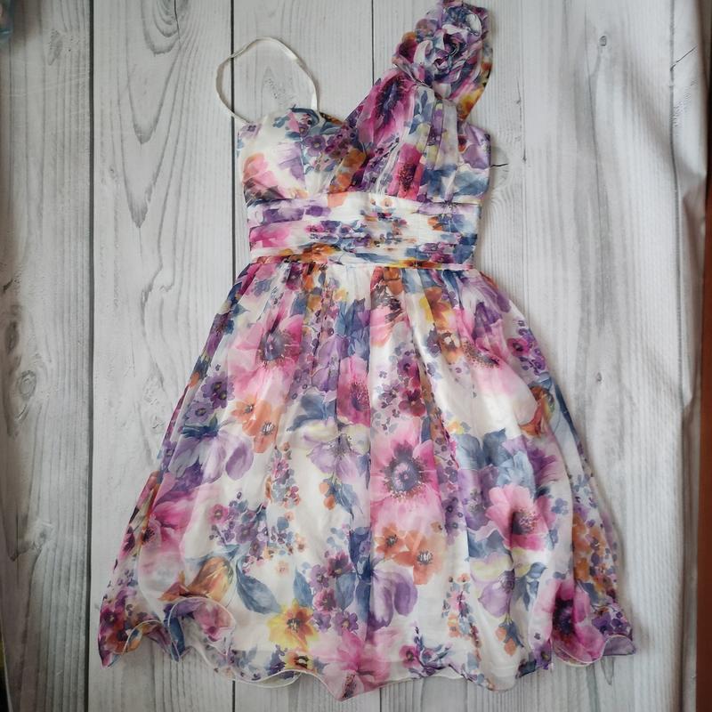 нежное платье из шифона размер 36 (S).состояние хорошее,но на платье оторвалась для одной бретели петля для фиксации.можно просто пришить ее,если не планировать его носить без нее,т к можно носить только с той бретелей где декор.можно сделать петлю самому из тесьмы или в ателье.длина 90 см,талия 30 плюс тянется,т к по спинке резинки.состав 100 процентов полиэстер,подкладка 97 полиэстер и 3 процента эластан. смотрите другие мои объявления