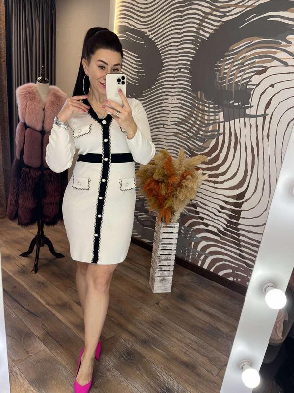 невероятно красивое платье приталенного кроя подчеркнет вашу красоту и создаст хорошее настроение, оно выполнено из трикотажа машинной вязки высокого качества, украшенного эффектными пуговицами и блестящими нитями люрекса, выглядит просто потрясающе длина 88-90 см, пг 42-44 см хорошо тянется, длина рукава от шеи 69-70 см размер универсальный 42-46 код 0464