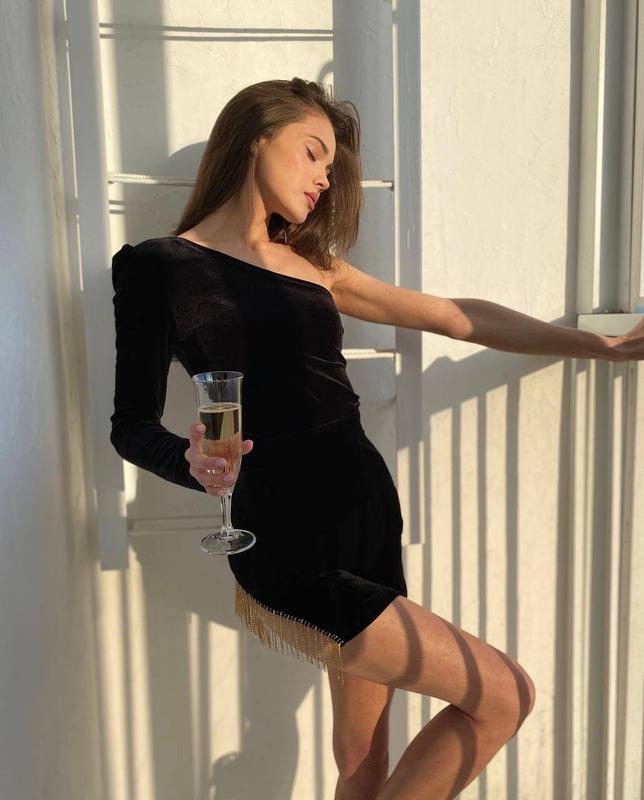 Платье из бархата ❤️ ▪️модель - 247 ▪️тканина - оксамит ▪️цвет- черный ▪️размер - 42-44, 44-46 Платье, которое не оставит тебя без внимания👌 Декорированная металлической бахромой, застегивается на потайную молнию, очень эффектно смотрится💔