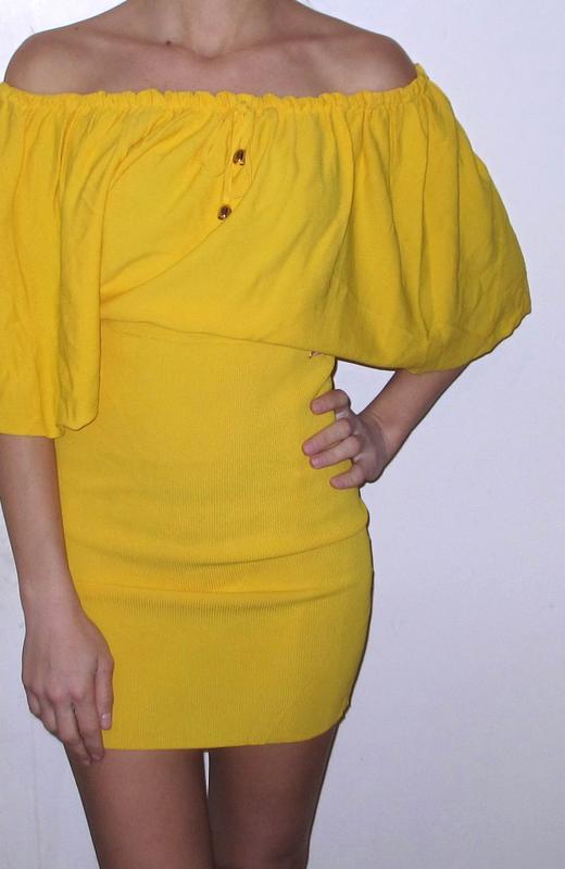 Стильное платье желтого цвета. Можно носить в нескольких вариантах. В отличном состоянии! Практически новое! Размер: XS (европ.34). Хорошо тянется на размеры S и M. Длина: 76 см.