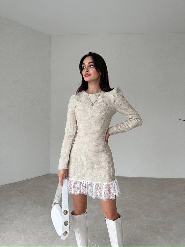 Must have 🔥 Платье с кружевом 🥰🌹 Размеры: S, M, L, XL Ткань: качественный твид, кружево как на фото Цвет: беж и черный Застегивается на молнию. Отличное качество. Цена 800 грн 🔥 арт. sat. 5478