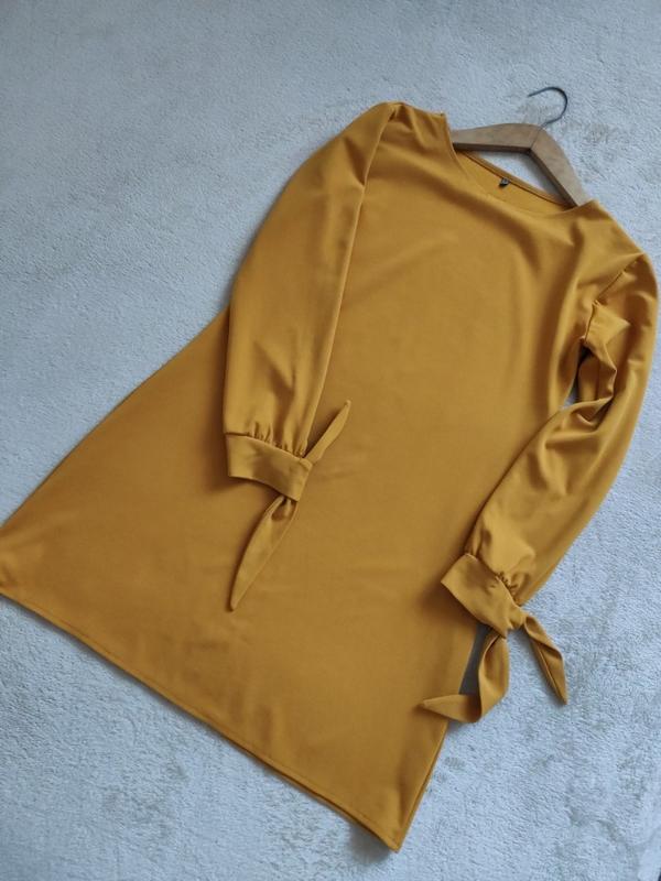Платье в хорошом состоянии.Мегает приталенный силуэт.Пог-51.Пот-48.Поб-55.Длина ткани тянется.Довжина платья-86.Длина рукава от шеи-68.Знизу рукав завязывается, тоже длину можно немного отрегулировать.Ширина спинки-43.