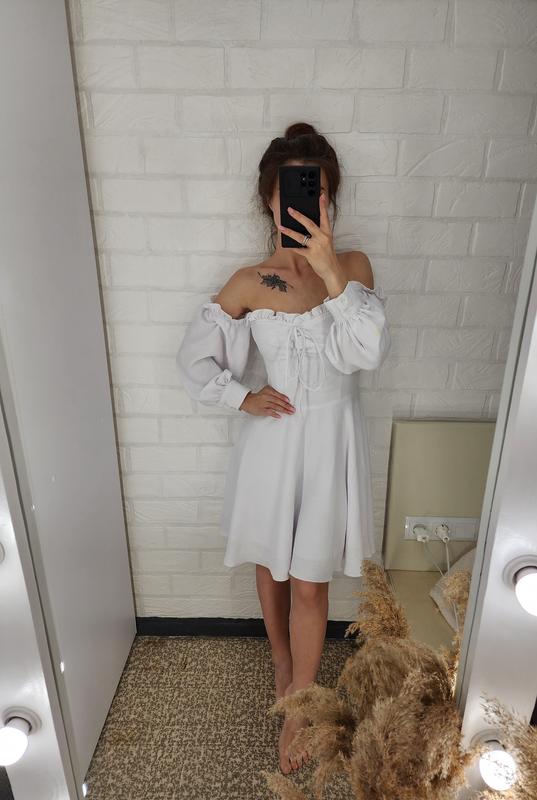Невероятное белое платье Из недостатков есть несколько пятен ( сама не стирала, 95 % что после стирки их не будет ) Грудь - 37 Рукав - 43 Талия - 32 Длина- 74