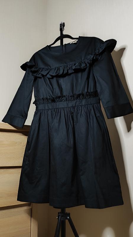 Натуральное черное платье с рюшами h&m