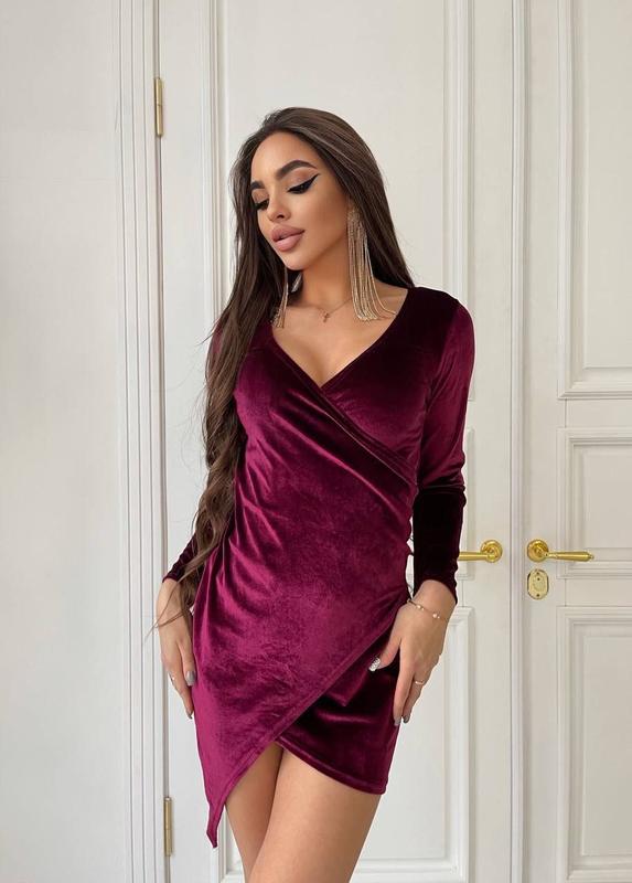 💫Платье ✨ 🔸Ткань бархат 🔸Размеры : S(42-44), M(44-46) 🔸Длина изделия 80 см 🔸Платье облегающее мини с запахом и глубоким декольте, присборенное по талии. Низ платья ассиметричен. #барабаш