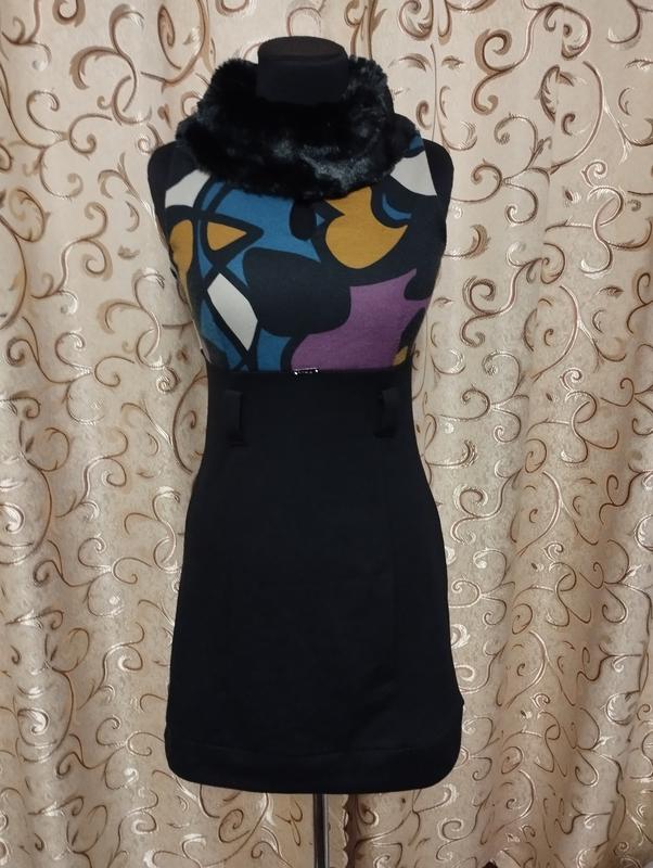 Платье с меховым воротничком. Под пояс. пояс отсутствует. Сзади застегивается на молнию. Фирма Artigli. Италия. Размер 42 наш. ПОГ 42. ПОТ 38. ПОБ 44. Длина 75.В идеальном состоянии.