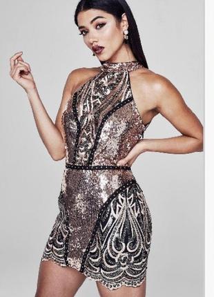 Сукня Boohoo Premium. З пайетками та вишивкою. Для найяскравішої зірочки на корпоративі. Для відтворення святкового настрою. Сукня розмір 10 або s-m. Заміри сукеньки: ОГ-84, ОТ-70, ОС-88. Тканина тягнеться, підійде для грудей та стегон 95-97. Але саме на талії вшита репсова стрічка - талія не більше 70см