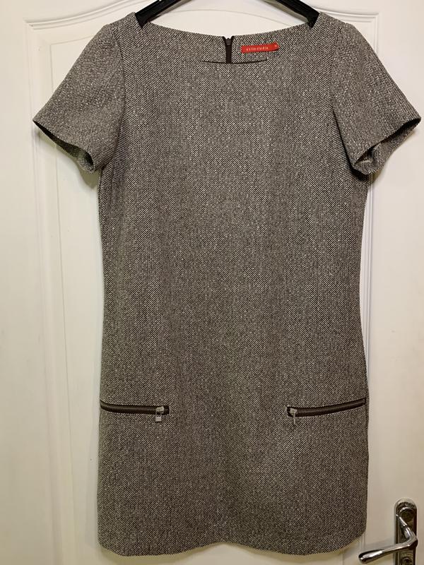 Платье что-то и с коротким рукавом, но теплое. Под гольф возможно носить и в зиму. Ткань немного с люриксоатой ниточкой, смотрится очень красиво. Размер «М». ПОГ - 49см, ПОТ - 47см, длина - 86 см.
